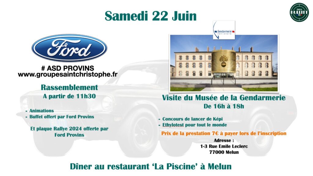 Accueil des participants avec animations et buffet offert, ainsi que la remise de la plaque Rallye 2024 offerte par Ford Provins.