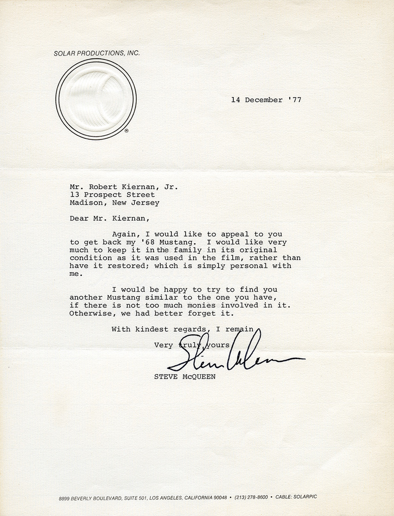 Malgré les tentatives de rachat de Steve McQueen en 1977, la voiture reste dans la famille Kiernan.