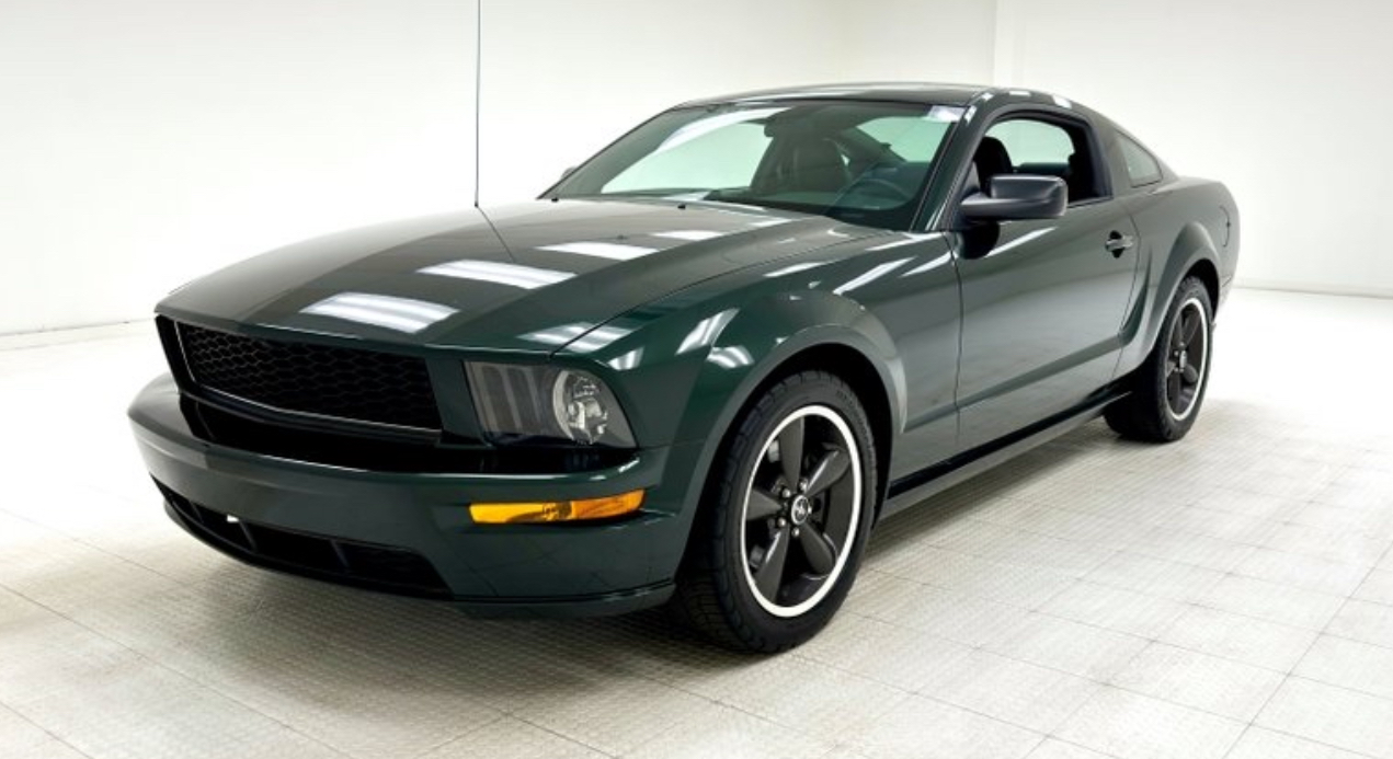 La Bullitt 2008 se distingue par son coloris iconique Dark Highland Green, directement inspiré de la Mustang 390 GT Fastback de 1968. Quelques exemplaires furent aussi produits en noir, mais la teinte verte reste celle du mythe.